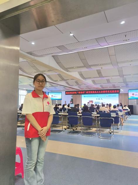 会议期间,八名志愿者根据分工各司其职,在不同岗位上展现出新时代医学生的专业素养与奉献精神。在签到处,黄安平、谭凤旭、许丽丽、柯灿、张茂同学耐心引导参会嘉宾签到、领取会议资料,细致解答嘉宾关于会场路线、议程安排的疑问,用热情的服务让嘉宾感受到温暖;季琛慧、江颖、姜黎菡负责会场秩序与设备协助,她们提前检查座椅摆放、音响投影等设备运行情况,会议期间时刻关注会场动态,及时协助工作人员传递话筒、调整设备,确保交流环节顺畅进行。