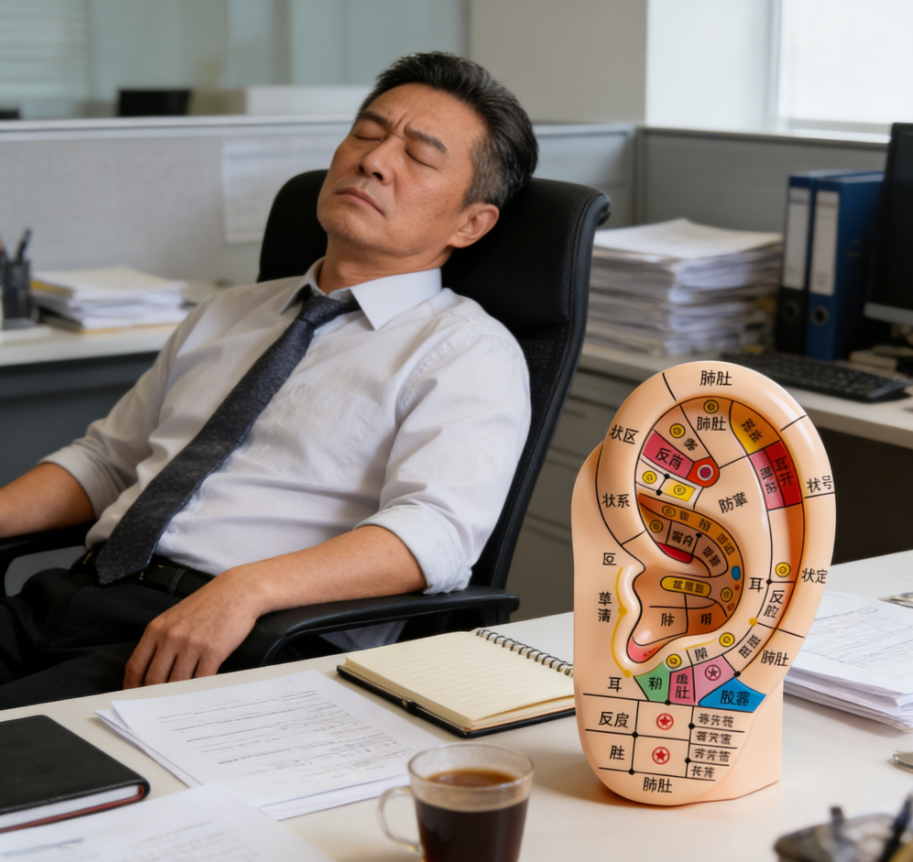 37岁的张先生被颈椎病折磨得彻夜难眠,推拿多次无效后抱着试试的心态来做耳穴治疗,仅3次就明显缓解,如今已能正常使用低枕睡眠;