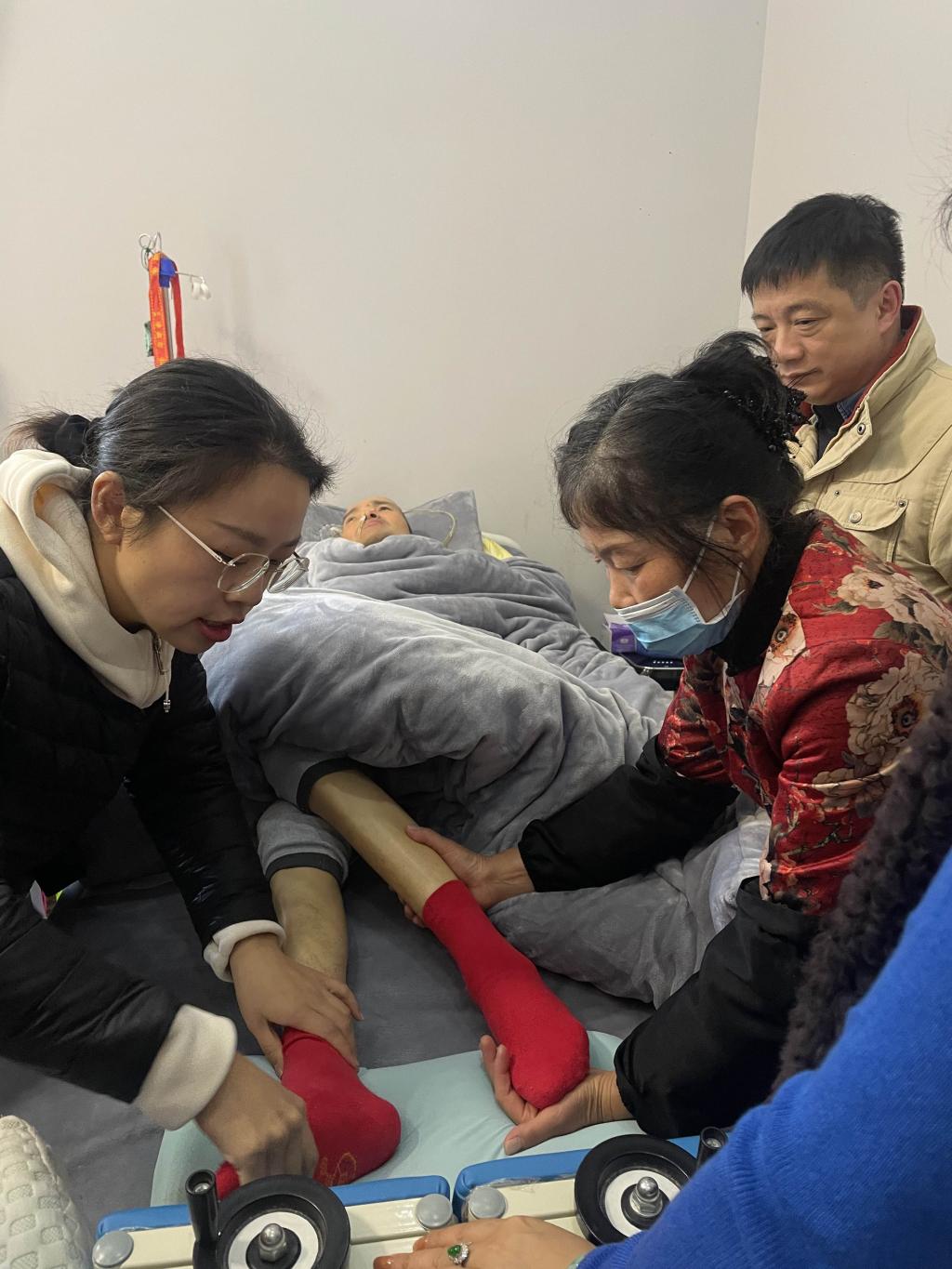 在患者家中,与患者家属进行了亲切交流,详细询问了患者目前的身体状况和日常生活护理情况,耐心倾听家属在照顾过程中遇到的困难和压力,并给予了心理上的安慰和鼓励。同时,成员们还仔细查看了患者的康复状况,为家属提供了一些专业的护理建议和康复指导。