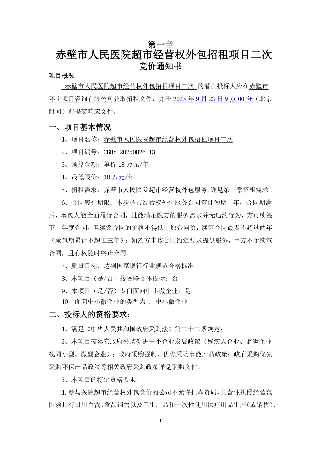 赤壁市人民医院超市经营权外包招租项目二次 竞价文件.pdf