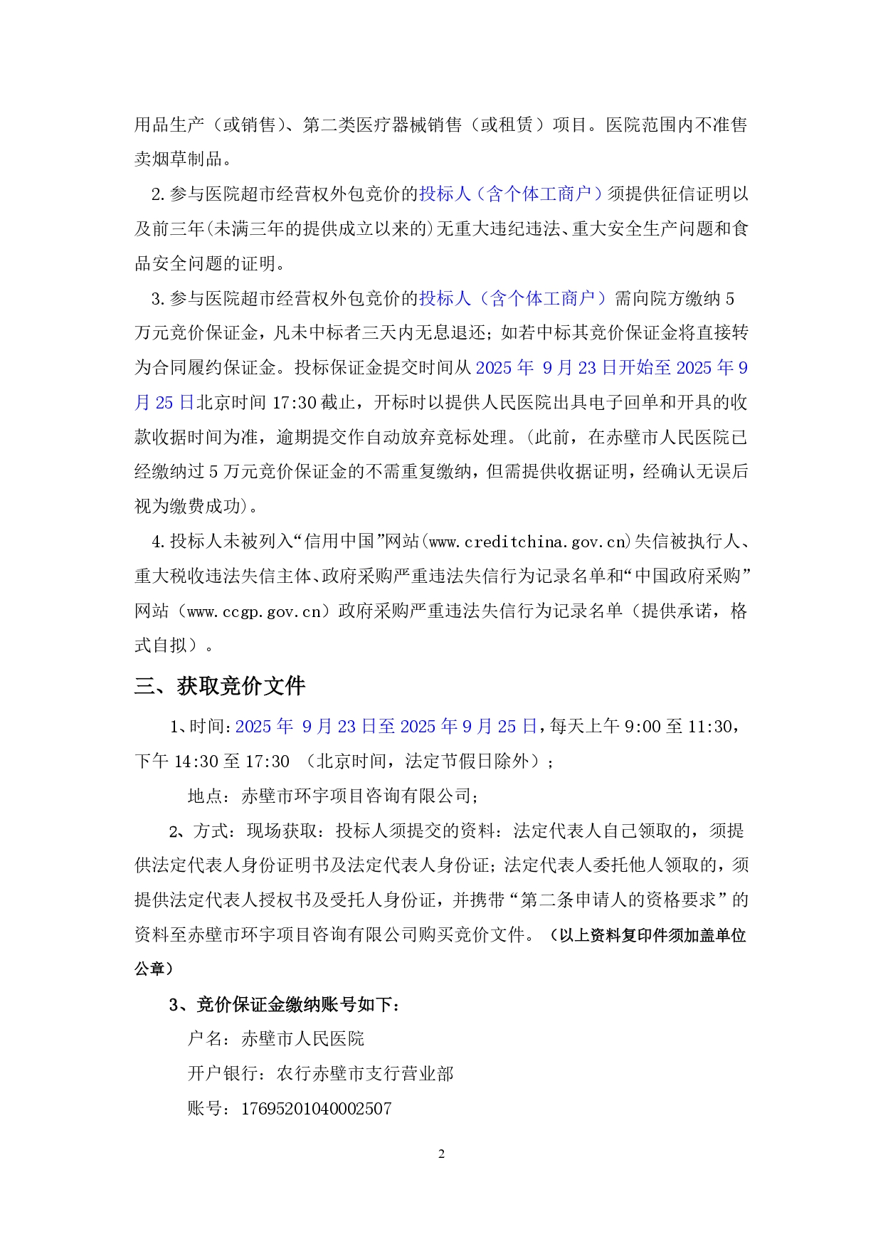 赤壁市人民医院超市经营权外包招租项目三次竞价文件.pdf