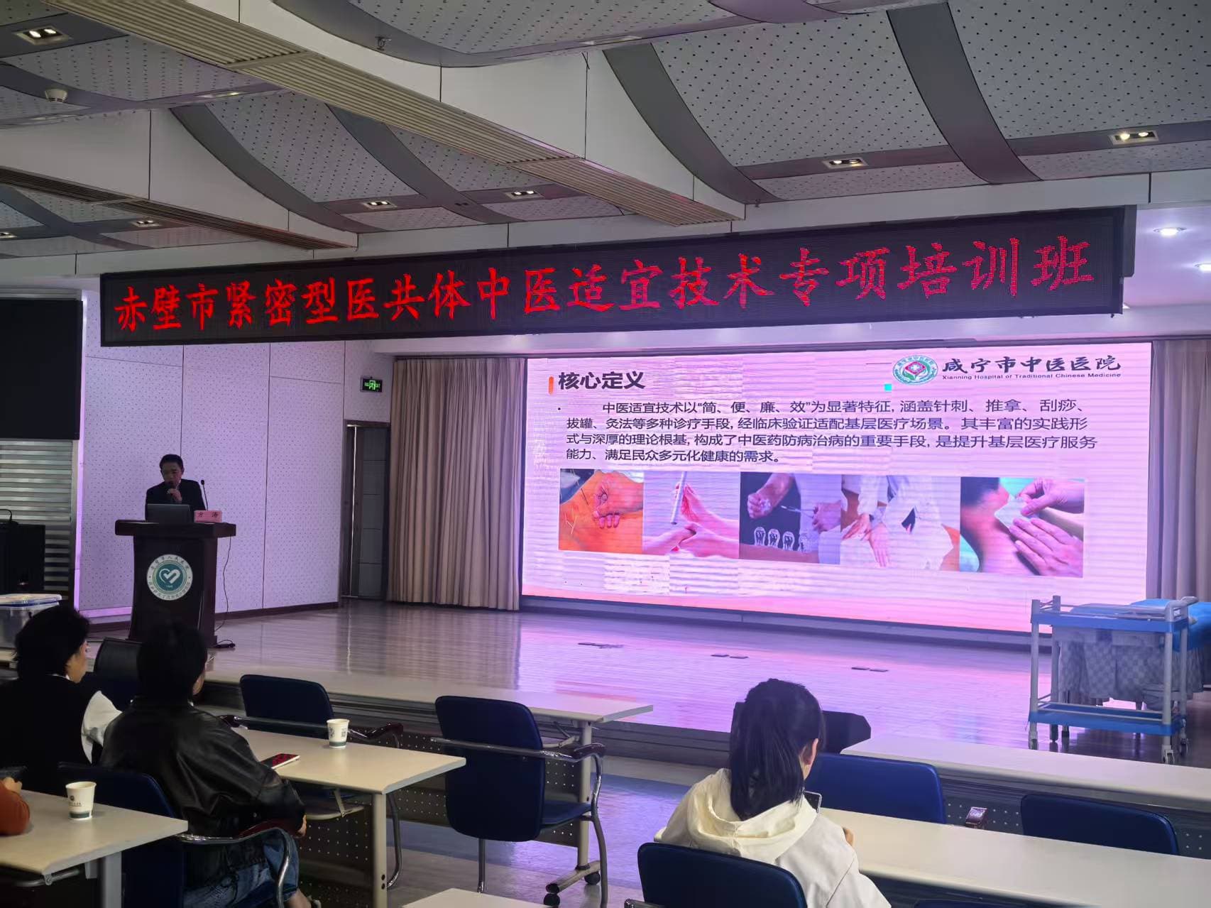 11月1日,由赤壁市人民医院(湖北科技学院附属赤壁医院)中医康复科主办的“赤壁市紧密型医共体中医适宜技术专项培训班”顺利举行。