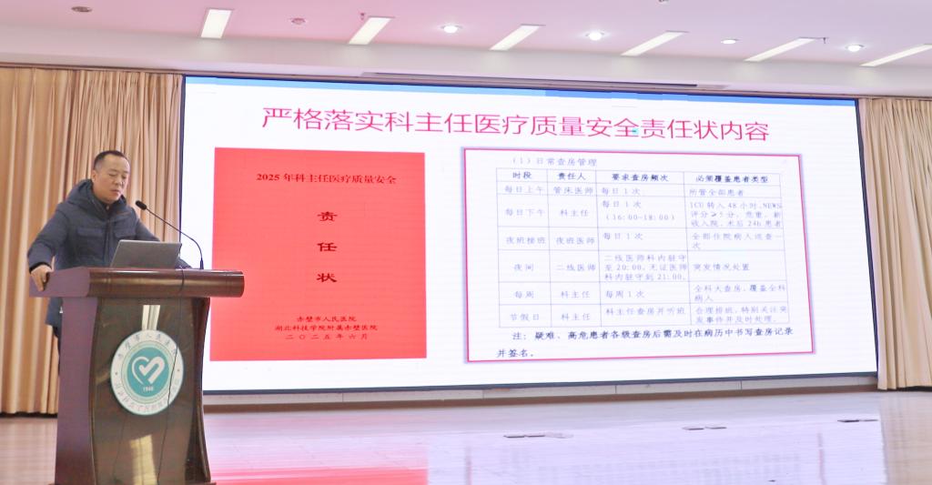 会议伊始,江爱民同志对上周的医疗安全案例进行了通报,并针对相关问题提出了明确要求。他强调了科主任责任状的重要性,要求各科室主任切实履行职责,加强对科室医疗安全的管理。同时,他还着重提到了三次查房制度,要求各科室严格按照规定执行,确保医疗质量。