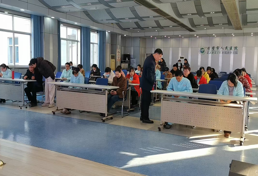 为打造专业过硬、服务规范的护理员队伍,筑牢患者照护安全防线,12月26日,赤壁市人民医院(湖北科技学院)顺利完成医疗护理员规范化培训结业考核,此次考核全程接受湖北省卫生健康人才交流发展中心指导监督,党委委员、副院长郑洲亲临现场巡查考场,全体参训护理员以饱满状态迎接检验,展现了良好的职业素养与学习成效。