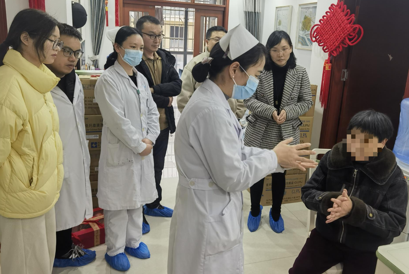 “阿姨,您这七步洗手法做得真标准,咱们一定要坚持,哪怕过年家里再忙,换液前这双手的消毒也不能马虎。”在患者家中,肾内科护士付林耐心地观察患者的换液操作全过程,从洗手、戴口罩、消毒到引流,不放过任何一个细节,并对出口处护理进行了现场评估和指导。