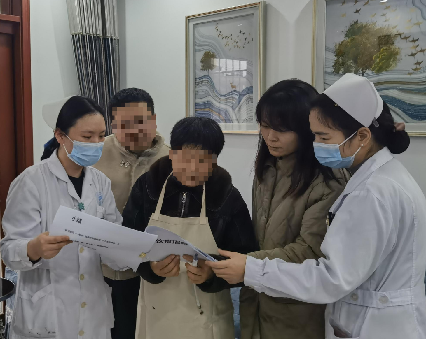 饮食管控:结合过年饮食特点,专科护士杨媚现场进行了饮食教育,反复叮嘱患者要“管住嘴”,严格控制水分摄入,避免因走亲访友而忽视了汤汤水水的总量;同时强调低盐、低钾、低磷饮食的重要性,提醒患者对香肠、腊肉、柑橘等年货要“浅尝辄止”。
