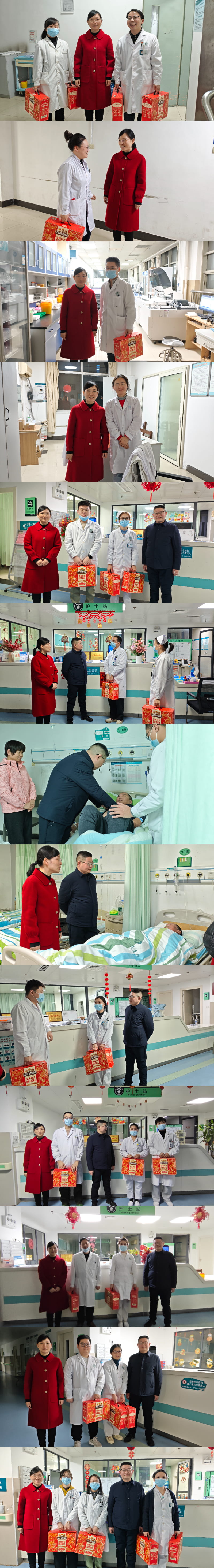2月16日(大年三十)晚及2月19日(大年初四)上午,赤壁市人民医院(湖北科技学院附属赤壁医院)领导班子成员及职能科室负责人组成慰问组,深入临床、医技各科室,向春节期间坚守一线的医务人员送去新春祝福与诚挚问候,传递医院对一线工作者的关怀与敬意。