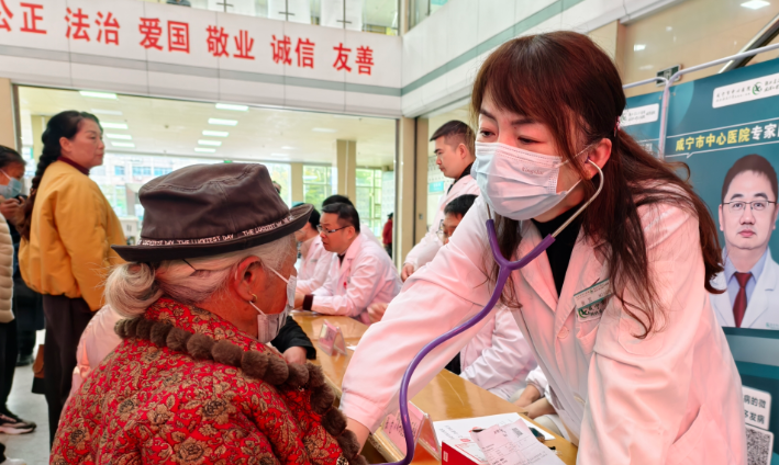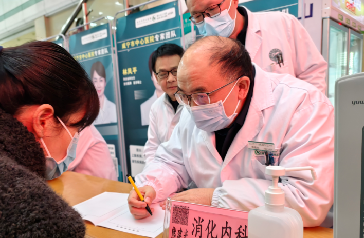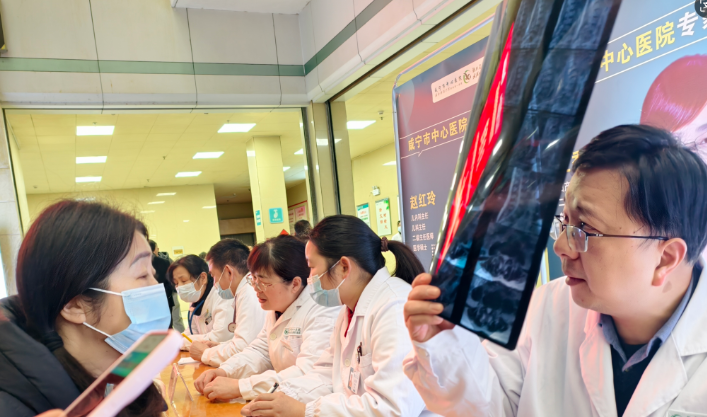 来自咸宁市中心医院的专家团队阵容强大,涵盖了临床多个核心学科。省专家、心胸外科学科主任阮永乐耐心地为一位冠心病患者分析病情,详细讲解日常注意事项和治疗方案;省专家、骨外科学科主任杨俭则专注地为一位腰椎间盘突出患者进行体格检查,现场示范康复训练动作;肿瘤科主任舒诚荣、三病区主任韩琦耐心解答患者关于肿瘤预防、术后康复的疑问,用专业知识缓解他们的焦虑;神经外科负责人赵卫海、博士邢泽刚仔细查看患者的脑部CT影像,给出精准的诊断建议;神经内科一病区主任杜杰、二病区负责人张金武为脑血管疾病患者提供个性化的健康指导;普通外科主任尹小平、消化内科主任熊建光、儿科主任赵红玲、妇产科负责人王秀虹等专家也都忙碌在各自的义诊岗位上,认真接待每一位患者,倾听诉求、细致检查、答疑解惑。甲状腺乳腺外科副主任黄明在为一位乳腺结节患者检查后,温和地说:“你的结节目前看起来是良性的,不用太担心,定期复查就好,我教你一些日常自查的方法。”患者悬着的心瞬间放了下来,连声道谢。心血管内科主任李宾为一位高血压患者调整了用药方案,并叮嘱他:“一定要按时吃药,低盐低脂饮食,定期监测血压,有问题随时跟我们联系。”